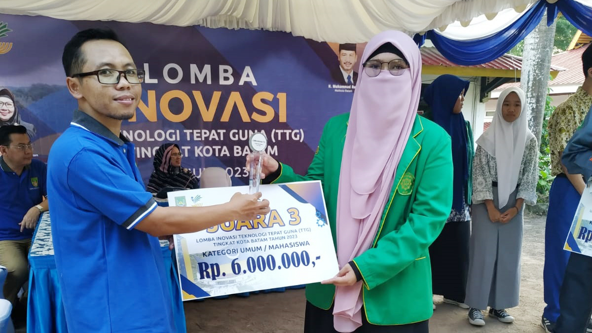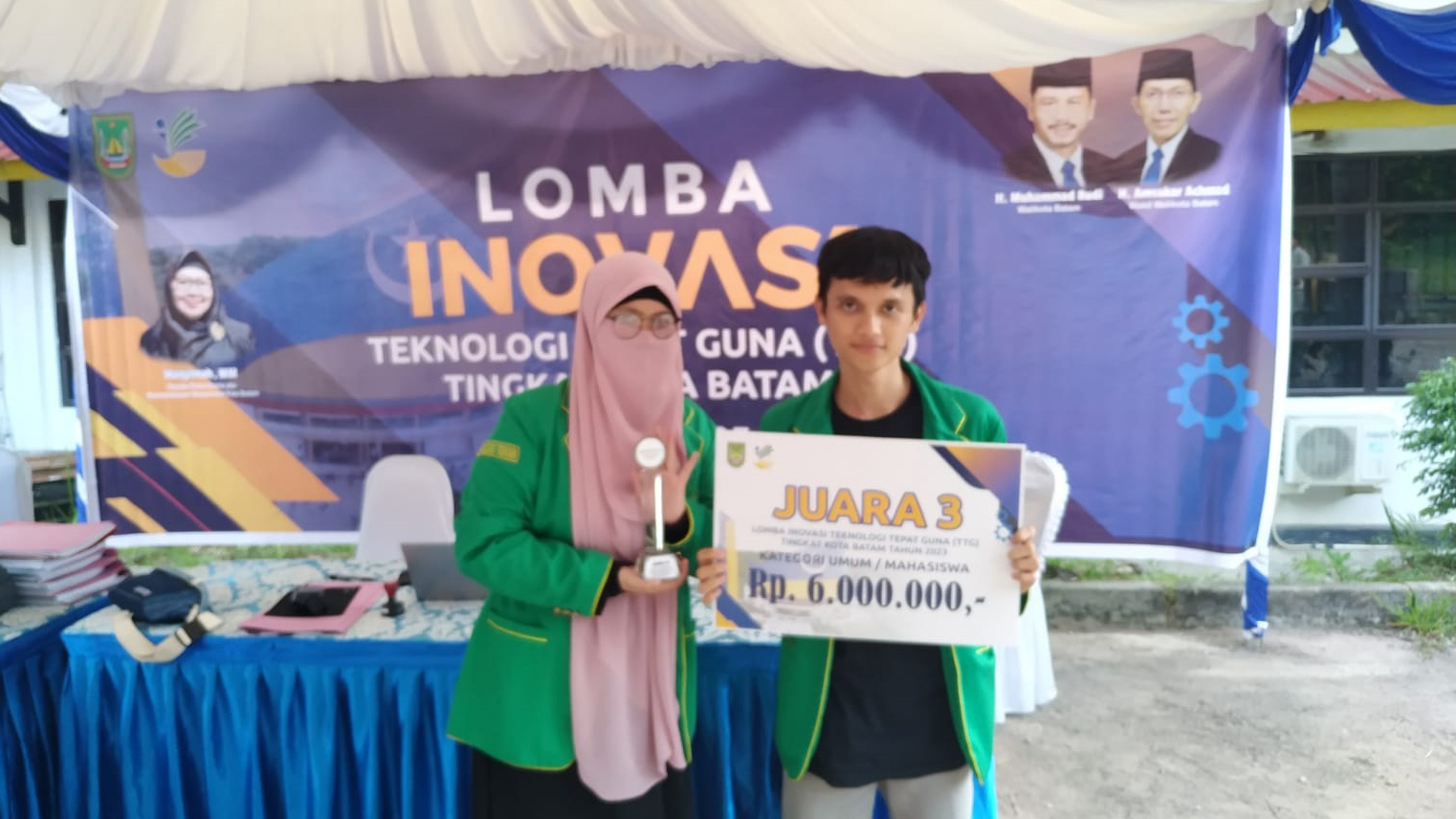 FT UIS – Mahasiswa Fakultas Teknik Universitas Ibnu Sina (FT UIS) Program Studi Teknik Industri, Lutfia dan Frendi Apriansyah, meraih juara III pada lomba Inovasi Teknologi Tepat Guna (TTG) Tingkat Kota Batam Tahun 2023 yang diselenggarakan oleh Dinas Sosial dan Pemberdayaan Masyarakat Kota Batam melalui Bidang Pemberdayaan Masyarakat.