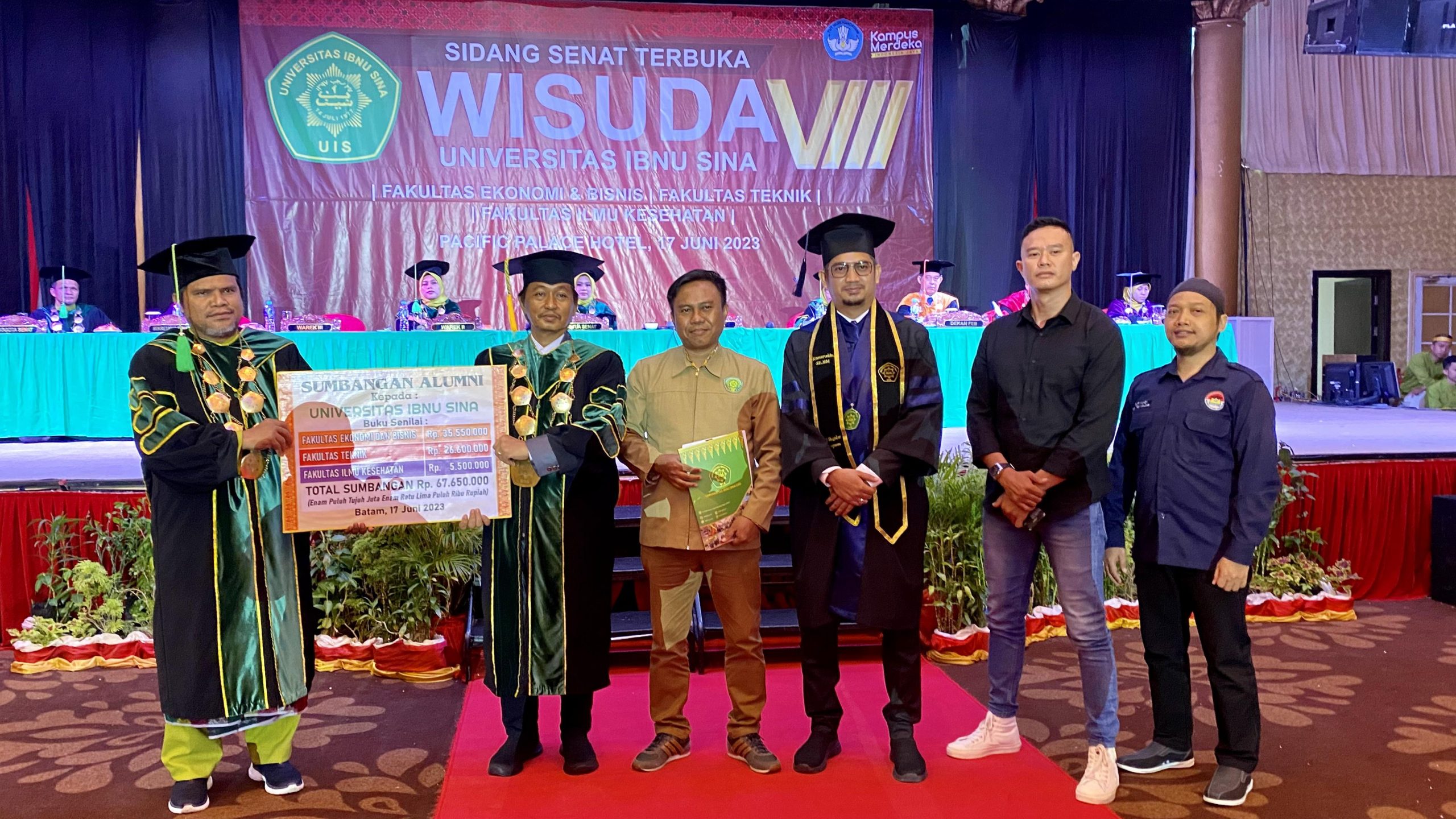 UIS, Batam – Sebanyak 381 lulusan dari tiga fakultas di lingkungan Universitas Ibnu Sina (UIS) yaitu Fakultas Ekonomi dan Bisnis (FEB), Fakultas Teknik (FT) dan Fakultas Ilmu Kesehatan (FIKes), dari tingkat Diploma III (D3), Sarjana dan Tingkat Magister melaksanakan Sidang Senat Terbuka atau Wisuda secara gabungan di Ballroom Hotel Pacific, pada Sabtu (17/06/2023).