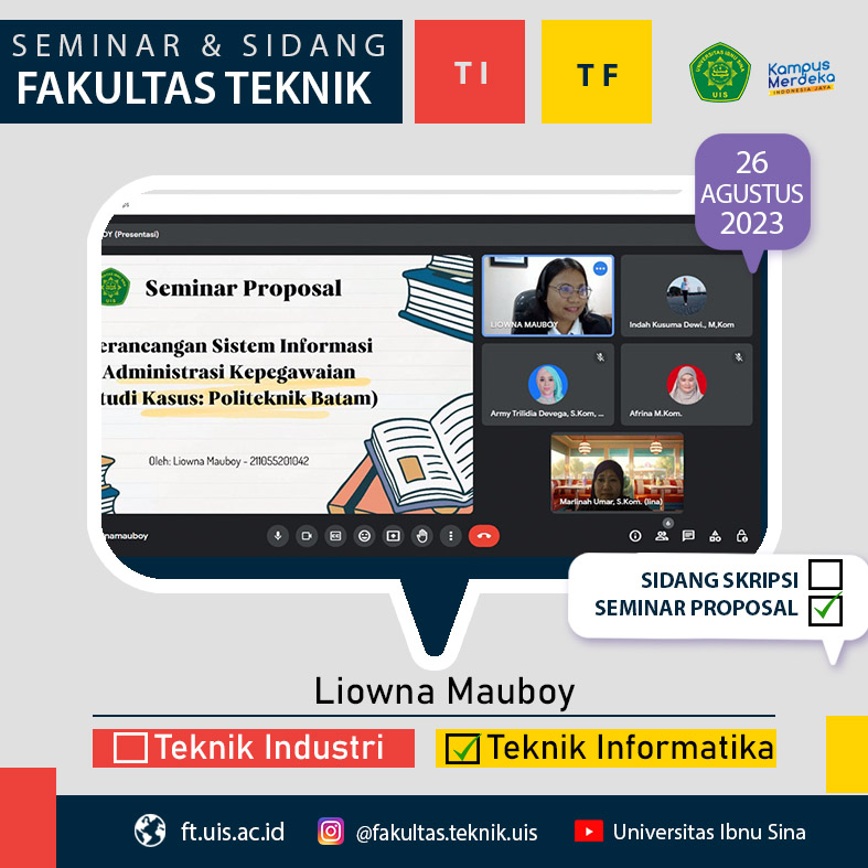 FT UIS, Batam – Fakultas Teknik Universitas Ibnu Sina (FT UIS) melaksanakan pelantikan pengurus tiga Himpunan Mahasiswa Program Studi baru pada Jumat (29/11/2024) di Aula Gedung B. Ketiga himpunan mahasiswa yang dilantik adalah Himpunan Mahasiswa Teknik Logistik (HIMANISTIK), Teknik Perkapalan (HMTP), dan Sistem Informasi (HIMASI), yang merupakan representasi dari program studi baru di FT UIS….